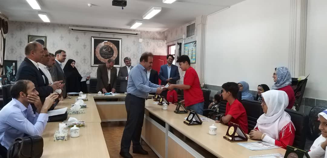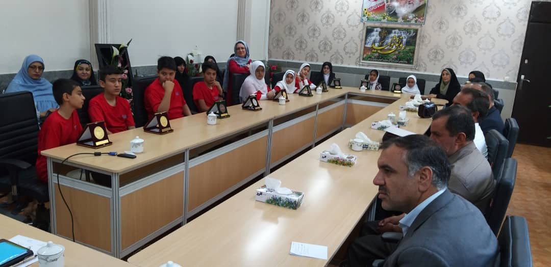 دانش اموزان مقام آور کشوری ucmas نیشابور در مورخ: 31/5/98 در دیدار با آقای مهر آبادی مدیریت محترم آموزش و پرورش ضمن ارائه کارهای خود هدایایی دریافت نمودند