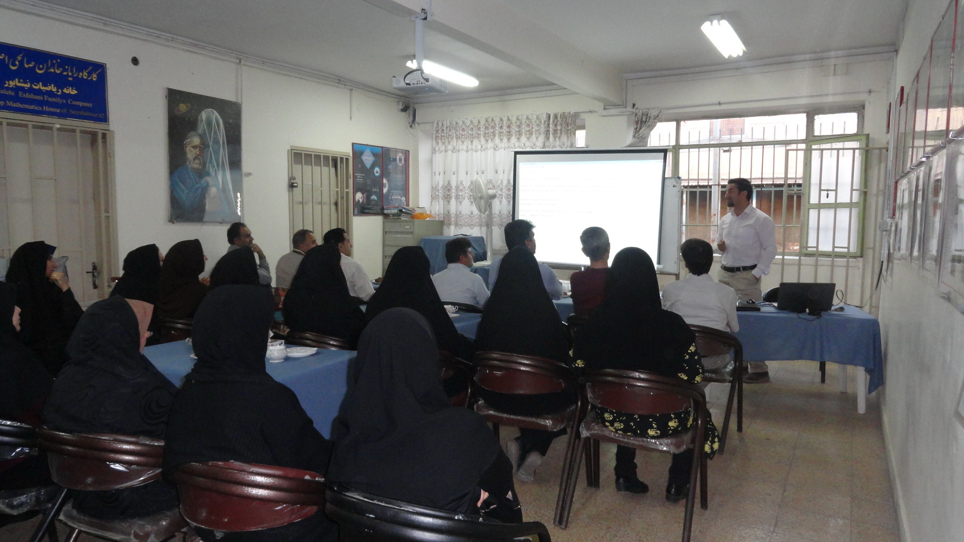 کارگاه ریاضی با موضوع کاربرد های ریاضی در اقتصاد و هنر و … با حضور محترم جناب آقای دکتر دولت آبادی استاد ریاضی دانشگاه ولی عصر رفسنجان روز یکشنبه مورخ 1396/05/15با حضور همکاران مدرس ریاضی مقاطع ابتدایی _متوسطه دوره اول و دوم ساعت 7 بعد ازظهر در محل خانه ریاضیات نیشابور تشکیل گردید.