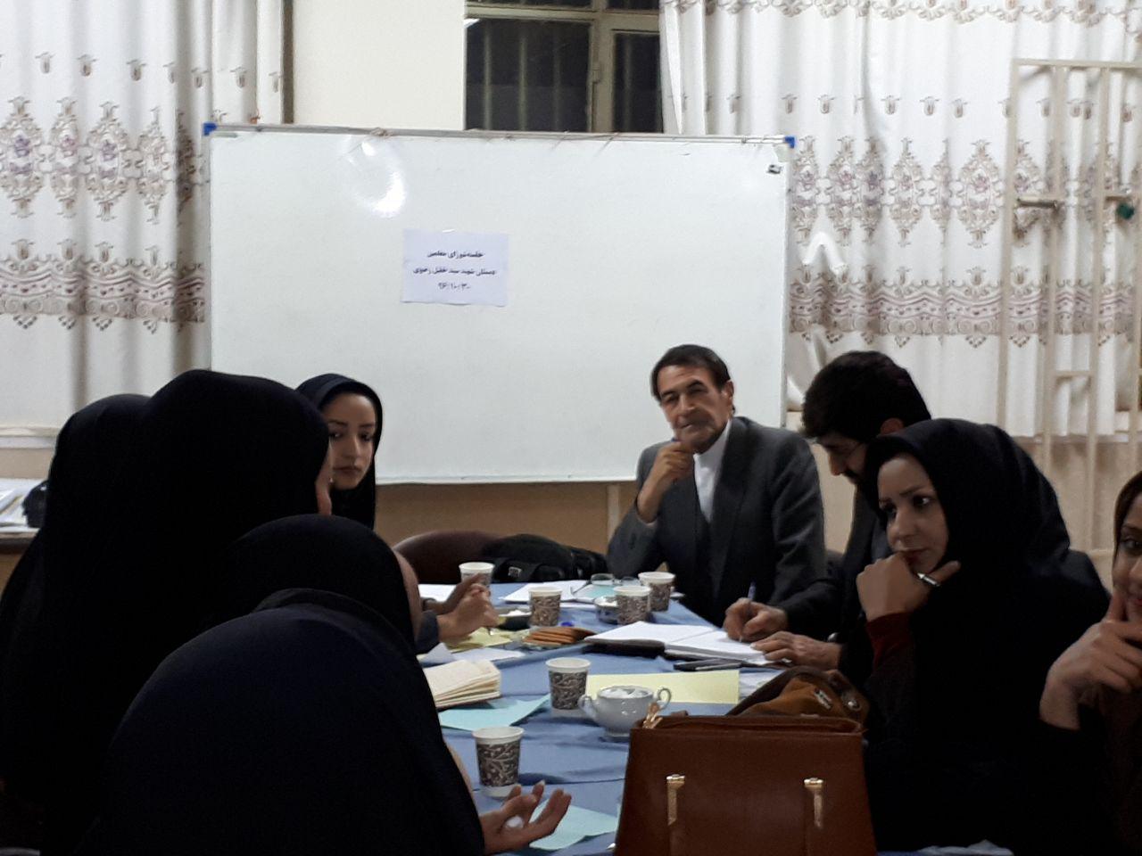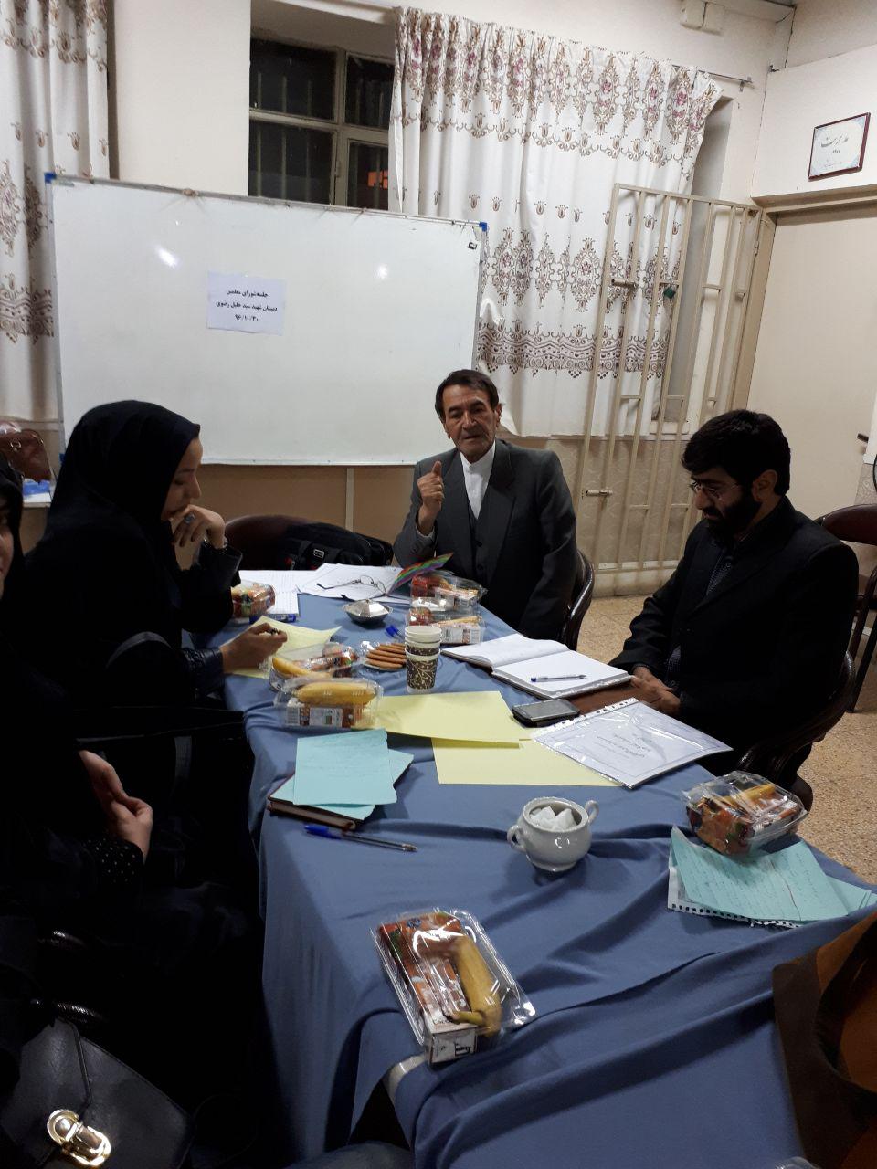 جلسه شورای معلمین دبستان شهید سید خلیل رضوی با حضور حاج آقای طلایی و مدیر محترم دبستان و کادر معلمین دبستان شهید سید خلیل رضوی (شهر بار) تبادل نظر در مورد شیوه های نوین تدریس