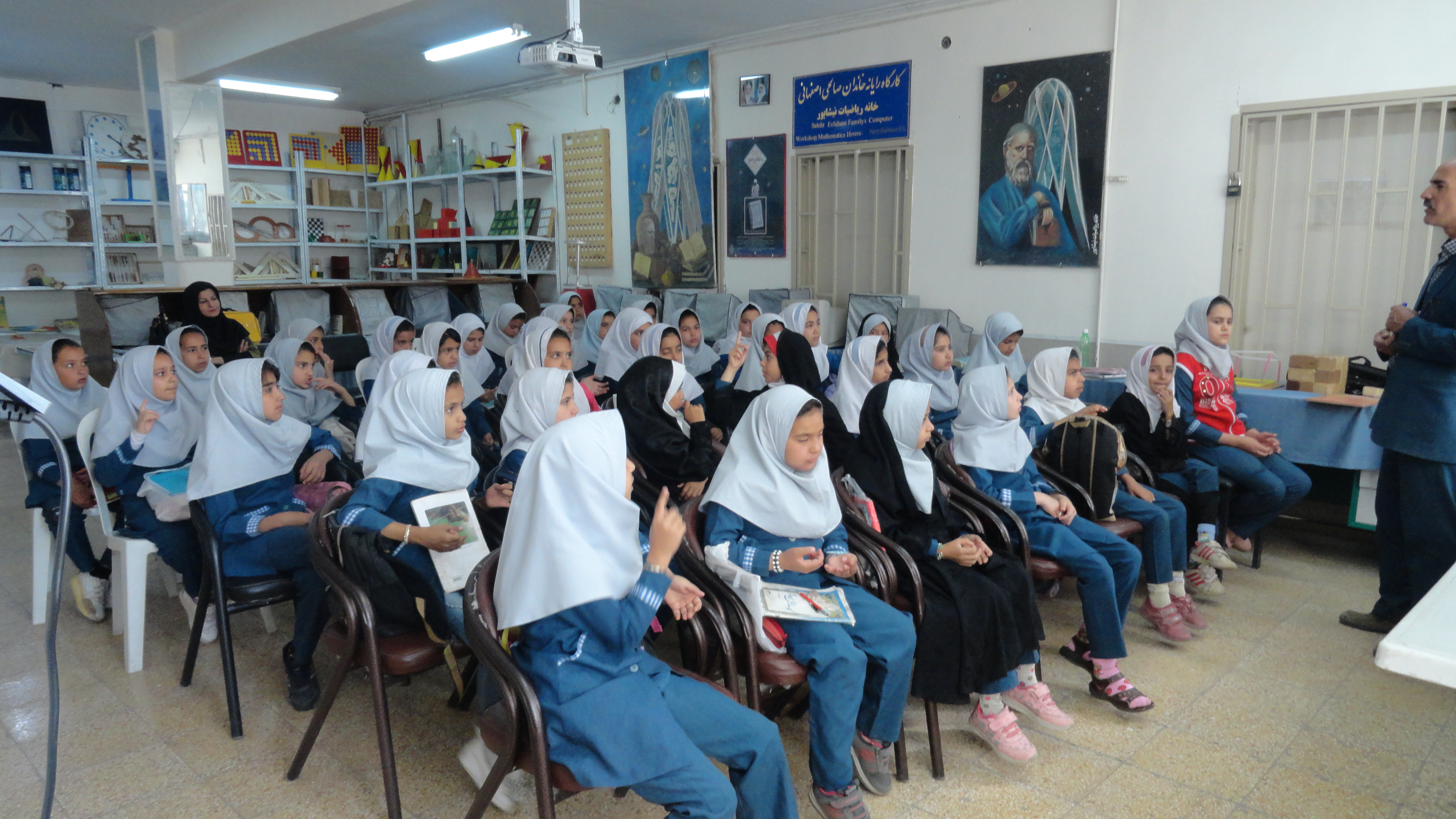 80 نفر از دانش آموزان پایه چهارم دبستان دخترانه هجرت شهرستان نیشابور روز یکشنبه 9/2/1397 با ضور در خانه ریاضیات و شرکت در کارگاه ریاضی و دست سازه های اموزشی خانه ریاضیات اشنا شدند. <مدرس آقای علومی>